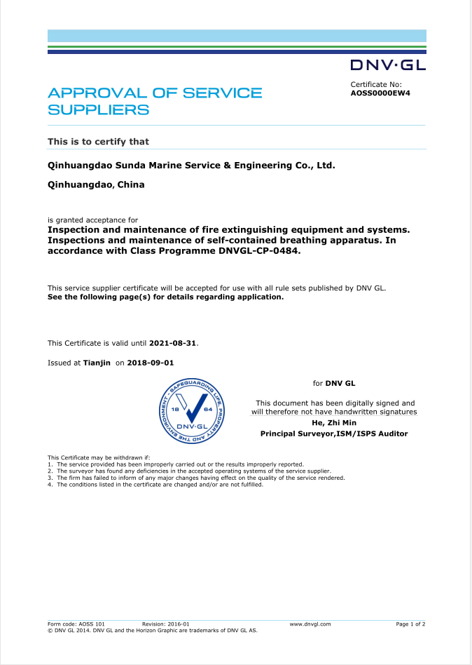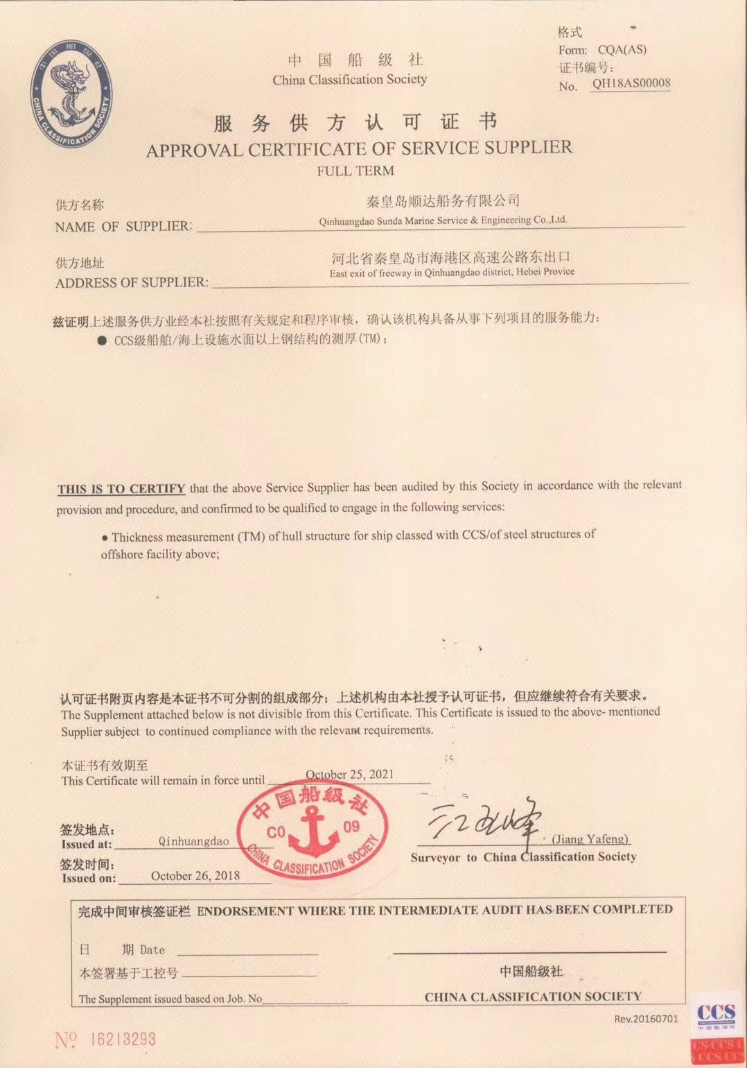 秦皇島順達(dá)船務(wù)有限公司位于美麗的海濱城市、中國北方著名的能源輸出大港--秦皇島。公司從事于船舶修理、物料供應(yīng)、水下檢測、船體測厚、消防救生設(shè)備及救生艇檢驗(yàn)、電氣自動(dòng)化修理等服務(wù)。 公司自1997年成立至今,先后為國內(nèi)外船東修理、檢驗(yàn)各類船舶萬余艘,積累了豐富的施工經(jīng)驗(yàn)。公司現(xiàn)有場地100余畝,員工30余人,以及工程用車若干臺(tái)。我們公司一直本著嚴(yán)以律己、真誠待人、精益求精、信譽(yù)至上的經(jīng)營理念,以優(yōu)質(zhì)的服務(wù)、專業(yè)的施工、合理的收費(fèi),得到了國內(nèi)外船東的廣泛認(rèn)可,贏得了良好的口碑和信譽(yù)。 公司已取得了中國船級社(CCS)、美國船級社(ABS)、日本船級社(NK)、德國船級社(DNV GL)等各個(gè)船級社的消防救生和救生艇檢驗(yàn)資質(zhì), ...
